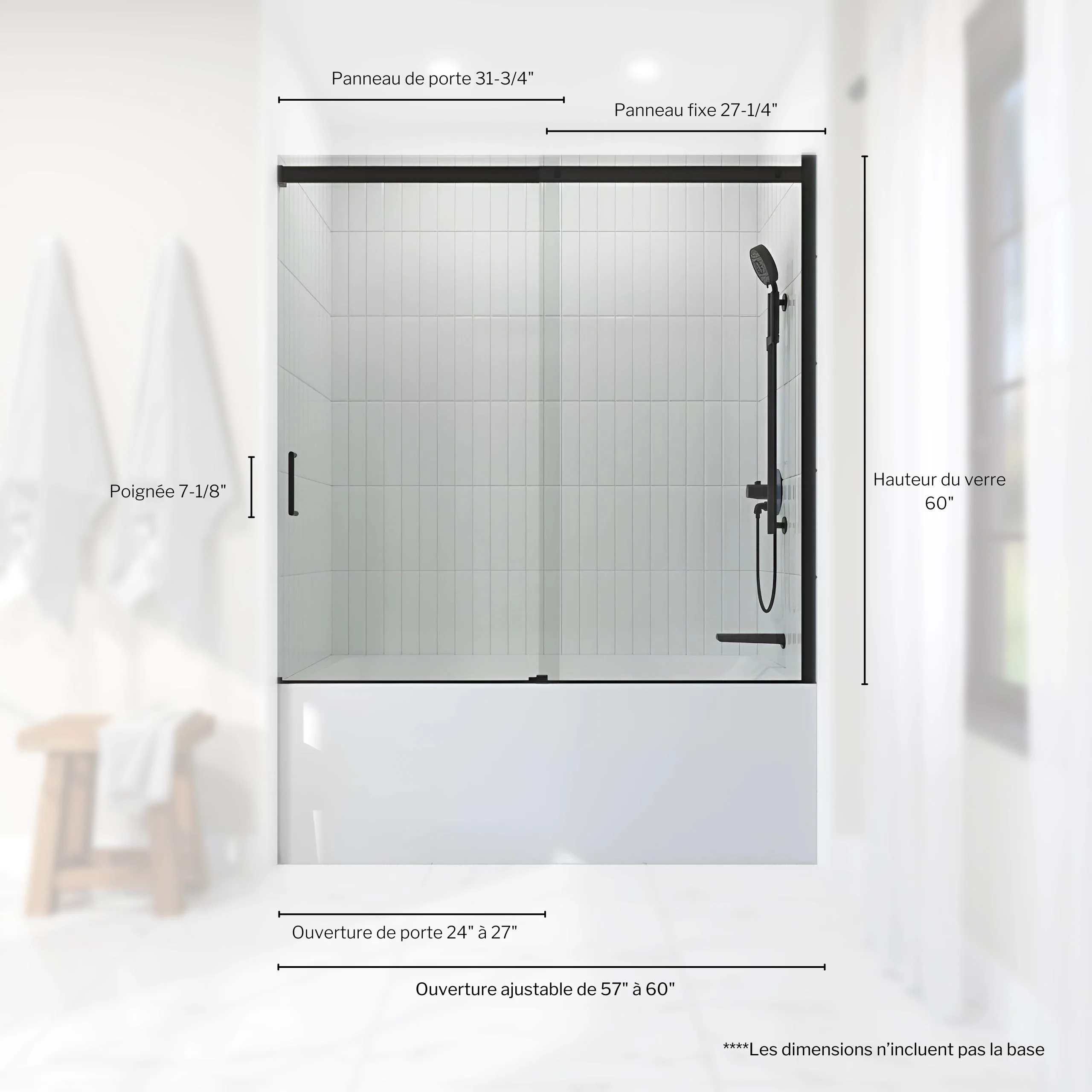 Découvrez la porte de bain 60'' de la collection Mance, un choix élégant et fonctionnel pour votre salle de bain. Son design moderne s'harmonise facilement avec n'importe quel décor de salle de bain.